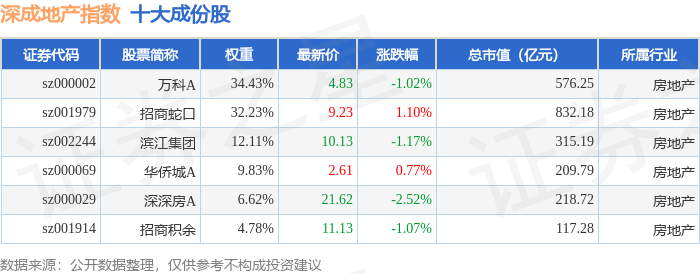 深成地产(971001)指数十大成份股详情如下:
