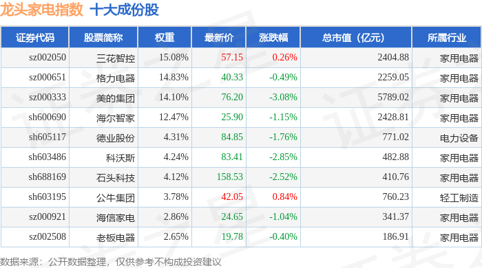 资金流向方面,龙头家电(980028)指数成份股当日主力资金净流出合计12.88亿元,游资资金净流出合计6073.63万元,散户资金净流入合计13.49亿元。成份股资金流向详情见下表: