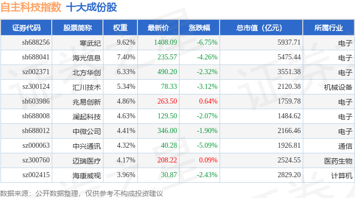 自主科技(980033)指数十大成份股详情如下: