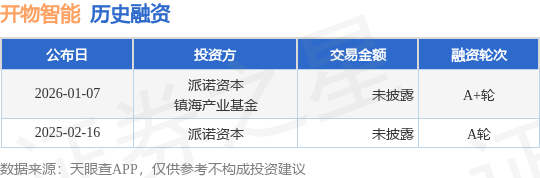 证券之星消息,根据天眼查APP于1月7日公布的信息整理,四川开物智能装备有限公司A+轮融资,融资额未披露,参与投资的机构包括派诺资本,镇海产业基金。