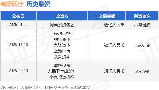 证券之星消息,根据天眼查APP于1月11日公布的信息整理,上海商汤善萃医疗科技有限公司战略融资,融资额近亿人民币,参与投资的机构包括河南投资集团。