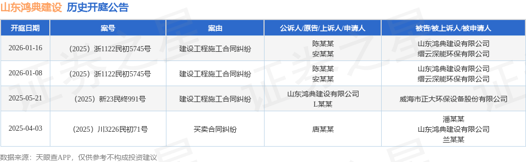 证券之星消息,根据天眼查APP显示,近日公布了一则山东鸿典建设有限公司作为被告/被上诉人的开庭公告,详细内容如下: