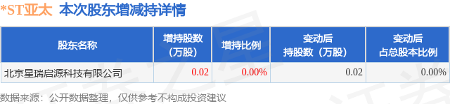 证券之星消息,1月13日*ST亚太发布公告《*ST亚太:详式权益变动报告书》,其股东北京星瑞启源科技有限公司于2025年12月23日合计增持0.02万股,占公司目前总股本的0.0001%,变动期间该股股价下跌3.74%,截止12月23日收盘报9.02元。