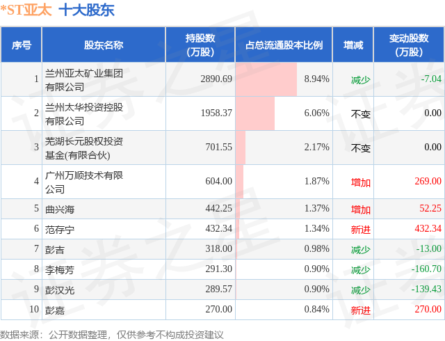 根据*ST亚太2025年三季报公布的十大股东详情如下: