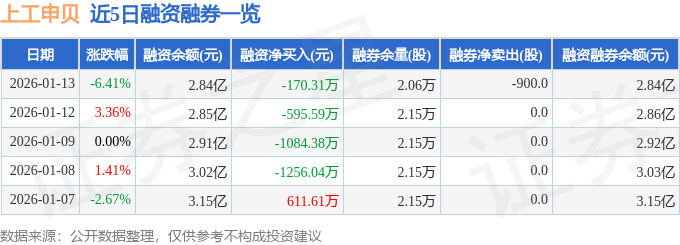 证券之星消息,截至2026年1月13日收盘,上工申贝(600843)报收于11.82元,下跌6.41%,换手率9.9%,成交量46.44万手,成交额5.61亿元。