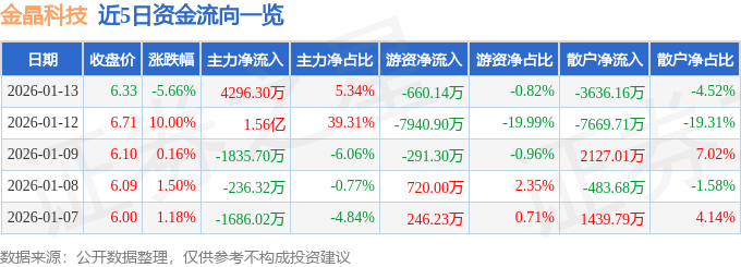 1月13日的资金流向数据方面,主力资金净流入4296.3万元,占总成交额5.34%,游资资金净流出660.14万元,占总成交额0.82%,散户资金净流出3636.16万元,占总成交额4.52%。