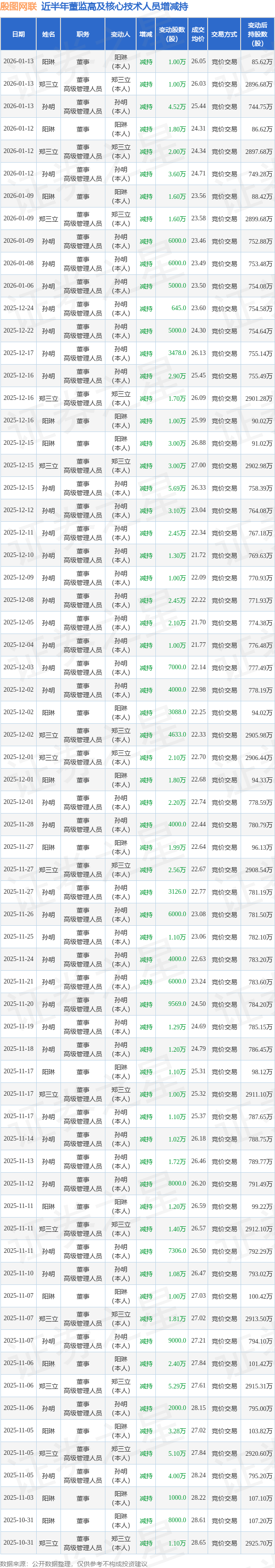 殷图网联近半年内的董监高及核心技术人员增减持详情如下: