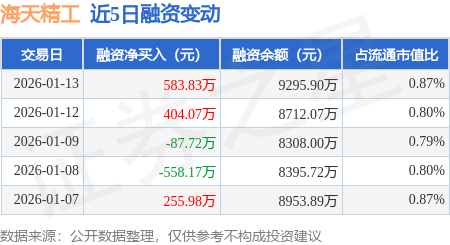 证券之星消息,1月13日,海天精工(601882)融资买入1439.1万元,融资偿还855.27万元,融资净买入583.83万元,融资余额9295.9万元。
