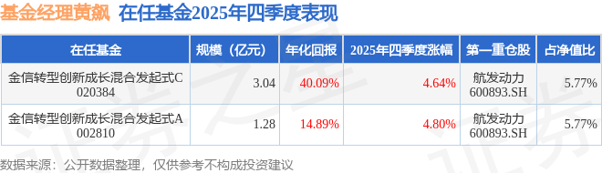 证券之星消息,截止2025年四季度末,基金经理黄飙旗下共管理2只基金,本季度表现最佳的为金信转型创新成长混合发起式A(002810),季度净值涨4.8%。