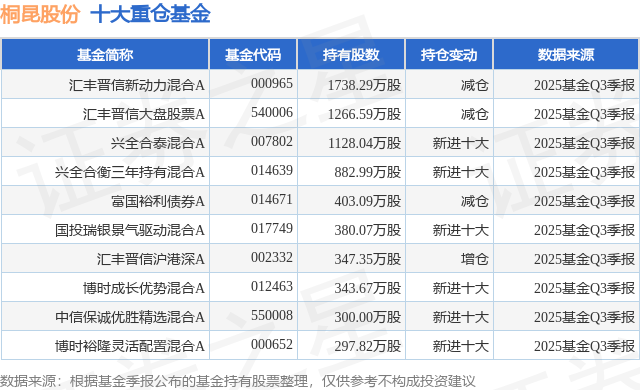 重仓桐昆股份的前十大公募基金请见下表: