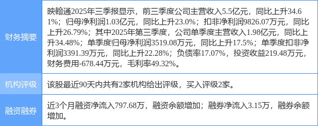2025年10月30日,中国银河研究员赵良毕,赵中兴发布了对映翰通的研报《映翰通2025年三季度业绩点评:5G工业迭代升级,AI新业态应用拓展》,该研报对映翰通给出“买入”评级。证券之星数据中心根据近三年发布的研报数据计算,该研报作者对此股的盈利预测准确度为77.48%。