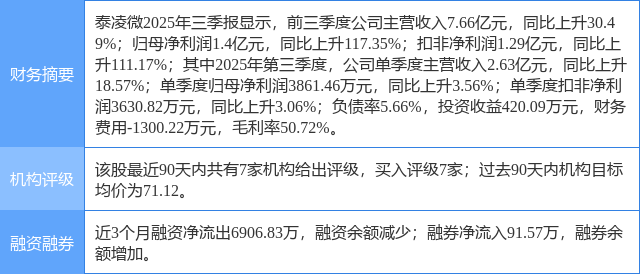今日泰凌微(688591)涨6.93%,收盘报49.7元。