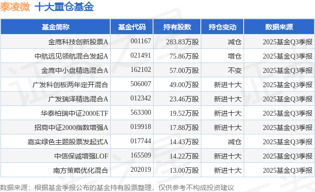 重仓泰凌微的前十大公募基金请见下表: