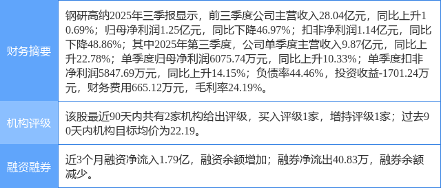 2025年10月28日,东吴证券研究员苏立赞,许牧,高正泰发布了对钢研高纳的研报《2025年三季报点评:高景气赛道优势未改,蓄势以待下一轮业绩弹性》,该研报对钢研高纳给出“买入”评级。研报中预计公司2025-2027年归母净利润分别为2.65/3.29/3.76亿元,对应PE分别为50/41/36倍,维持“买入”评级。证券之星数据中心根据近三年发布的研报数据计算,该研报作者对此股的盈利预测准确度为29.74%。