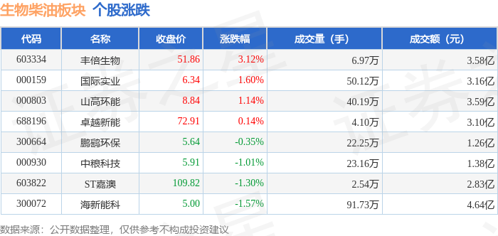 证券之星消息,1月14日生物柴油板块较上一交易日下跌0.51%,海新能科领跌。当日上证指数报收于4126.09,下跌0.31%。深证成指报收于14248.6,上涨0.56%。生物柴油板块个股涨跌见下表: