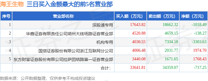 证券之星消息,沪深交易所2026年1月14日公布的交易公开信息显示,海王生物(000078)因连续三个交易日内,涨幅偏离值累计达到20%的证券登上龙虎榜。此次是近5个交易日内第1次上榜。