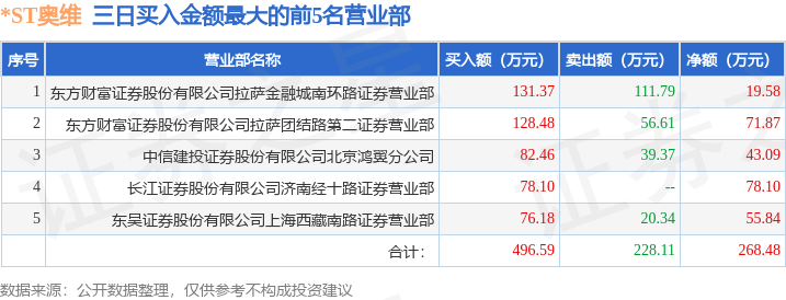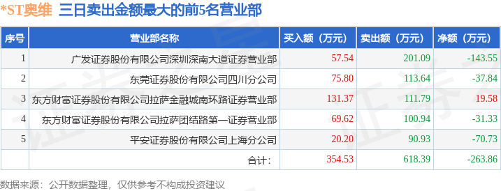 证券之星消息,沪深交易所2026年1月14日公布的交易公开信息显示,*ST奥维(002231)因连续三个交易日内,跌幅偏离值累计达到12%的ST证券、*ST证券和未完成股改证券登上龙虎榜。此次是近5个交易日内第2次上榜。