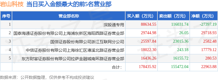 证券小知识:龙虎榜是交易所披露的竞价交易公开信息,现身龙虎榜的个股都是当日最为活跃的个股,是投资者日常重点关注的数据。交易所公布当日买入金额和卖出金额前五名的席位,其中一些席位代表特殊意义,如机构专用席位是指基金专用席位、券商自营专用席位、社保专用席位、券商理财专用席位、保险机构专用席位、保险机构租用席位、QFII专用席位等机构投资者买卖证券的专用通道和席位。深股通专用、沪股通专用为北向资金的交易席位。从龙虎榜数据可以发现和研究机构、游资和散户的资金动向。一些营业部席位经常上榜,市场知名度较高,投资者整理代表散户、游资、量化等不同资金的营业部席位。