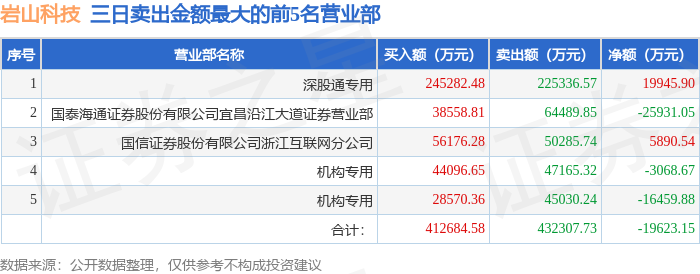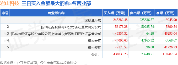 证券之星消息,沪深交易所2026年1月14日公布的交易公开信息显示,岩山科技(002195)因日涨幅偏离值达到7%的前5只证券,连续三个交易日内,涨幅偏离值累计达到20%的证券登上龙虎榜。此次是近5个交易日内第3次上榜。