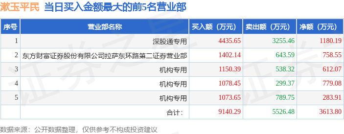 证券小知识:龙虎榜是交易所披露的竞价交易公开信息,现身龙虎榜的个股都是当日最为活跃的个股,是投资者日常重点关注的数据。交易所公布当日买入金额和卖出金额前五名的席位,其中一些席位代表特殊意义,如机构专用席位是指基金专用席位、券商自营专用席位、社保专用席位、券商理财专用席位、保险机构专用席位、保险机构租用席位、QFII专用席位等机构投资者买卖证券的专用通道和席位。深股通专用、沪股通专用为北向资金的交易席位。从龙虎榜数据可以发现和研究机构、游资和散户的资金动向。一些营业部席位经常上榜,市场知名度较高,投资者整理代表散户、游资、量化等不同资金的营业部席位。