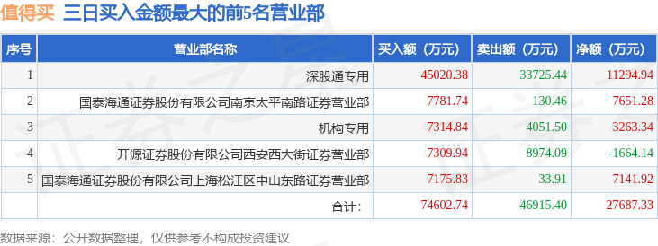 从龙虎榜公布的三日买卖数据来看,机构合计净买入4914.8万元,北向资金合计净买入1.13亿元。作手新一、上海中山东路等知名游资榜上有名。(知名游资作手新一一般指国泰海通证券股份有限公司南京太平南路证券营业部席位、知名游资上海中山东路一般指国泰海通证券股份有限公司上海松江区中山东路证券营业部席位,根据市场资料整理,仅供参考)