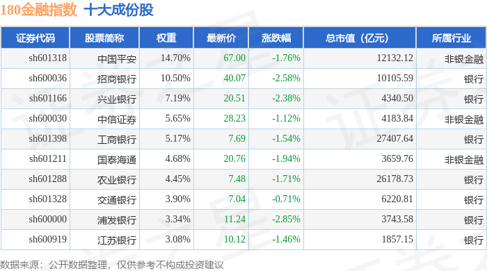 180金融(000018)指数十大成份股详情如下: