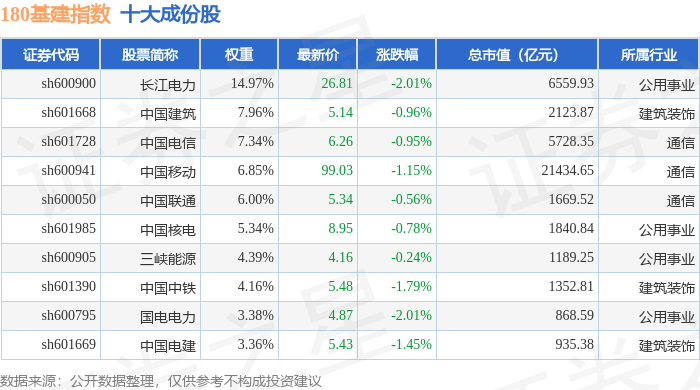 180基建(000025)指数十大成份股详情如下:
