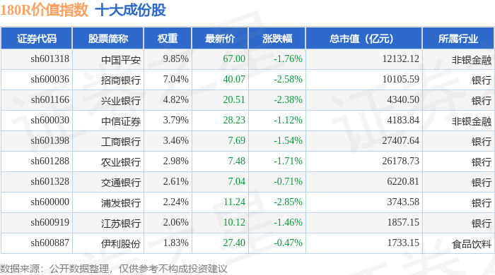 180R价值(000031)指数十大成份股详情如下: