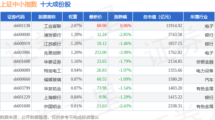 上证中小(000046)指数十大成份股详情如下: