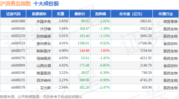 近10日内沪消费品(000103)指数成份股做了调整,剔除了1只股票。