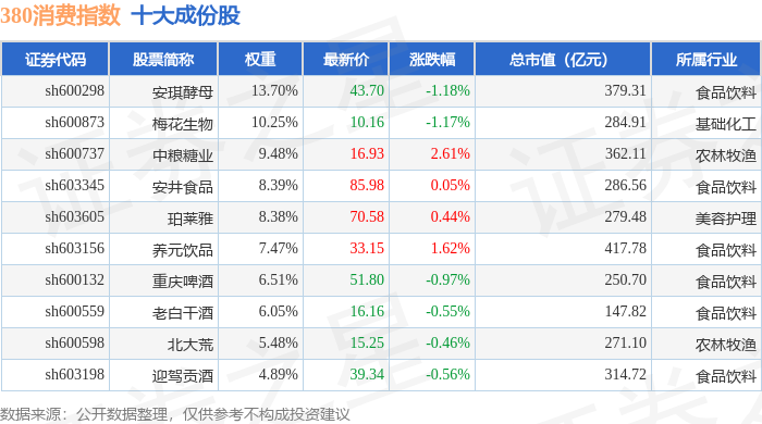 证券之星消息,1月14日,380消费(000108)指数报收于12648.12点,跌0.24%,成交54.18亿元,换手率1.41%。当日该指数成份股中,上涨的有4家,中粮糖业以2.61%的涨幅领涨,下跌的有14家,天味食品以2.61%的跌幅领跌。