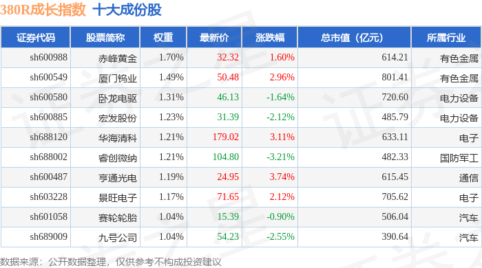 380R成长(000119)指数十大成份股详情如下: