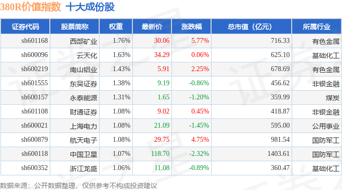 380R价值(000120)指数十大成份股详情如下: