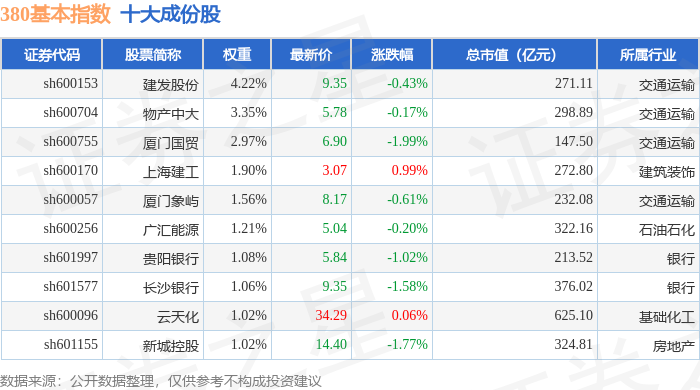 380基本(000128)指数十大成份股详情如下: