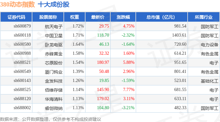380动态(000141)指数十大成份股详情如下:
