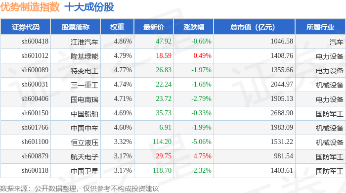 证券之星消息,1月14日,优势制造(000146)指数报收于8574.34点,跌0.52%,成交1736.35亿元,换手率4.05%。当日该指数成份股中,上涨的有15家,中控技术以7.95%的涨幅领涨,下跌的有34家,五洲新春以7.39%的跌幅领跌。