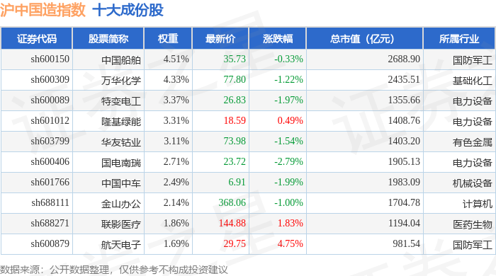 沪中国造(000161)指数十大成份股详情如下:
