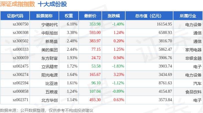 深证成指(399001)指数十大成份股详情如下: