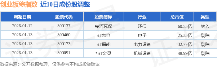 近10日内创业板综(399102)指数成份股做了调整,新纳入了1只股票,剔除了3只股票。