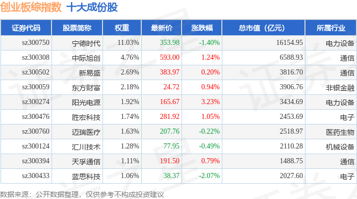 创业板综(399102)指数十大成份股详情如下:
