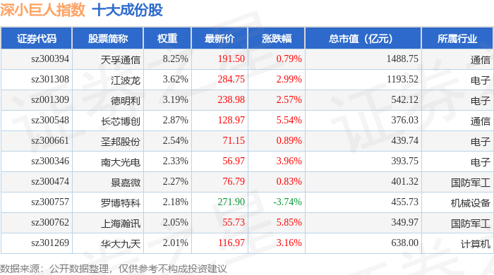 深小巨人(399268)指数十大成份股详情如下: