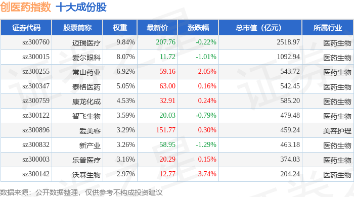 证券之星消息,1月14日,创医药(399275)指数报收于2926.78点,涨0.55%,成交556.24亿元,换手率5.82%。当日该指数成份股中,上涨的有28家,英科医疗以8.37%的涨幅领涨,下跌的有21家,尔康制药以3.6%的跌幅领跌。