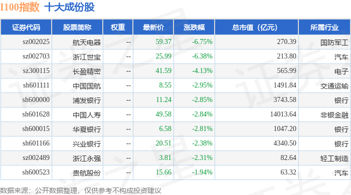I100(399415)指数十大成份股详情如下: