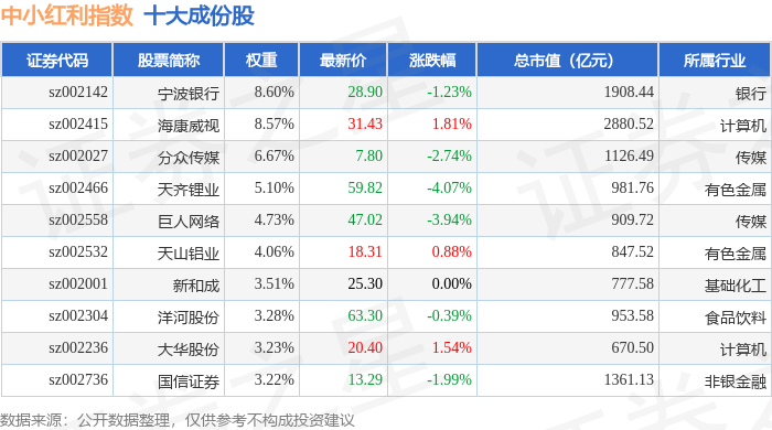 中小红利(399649)指数十大成份股详情如下: