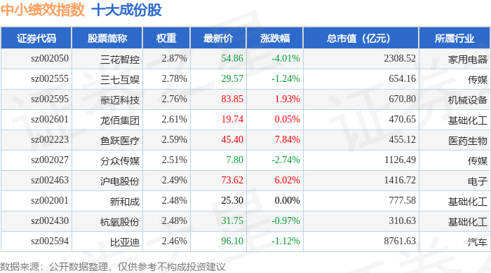资金流向方面,中小绩效(399658)指数成份股当日主力资金净流出合计95.54亿元,游资资金净流入合计5.21亿元,散户资金净流入合计90.33亿元。成份股资金流向详情见下表: