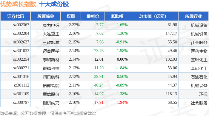 优势成长(399698)指数十大成份股详情如下: