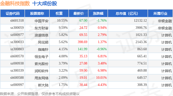 资金流向方面,金融科技(399699)指数成份股当日主力资金净流入合计47.52亿元,游资资金净流出合计29.16亿元,散户资金净流出合计18.05亿元。成份股资金流向详情见下表: