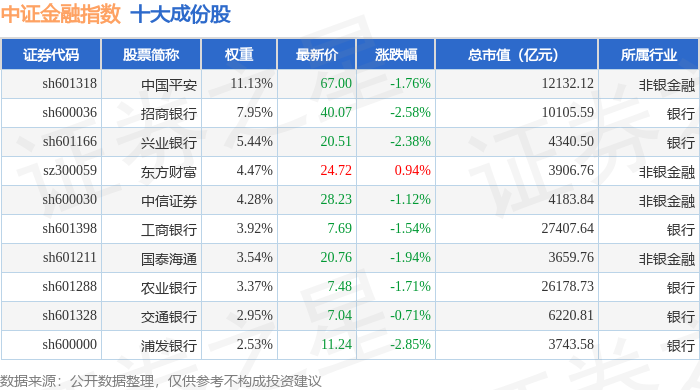 资金流向方面,中证金融(399934)指数成份股当日主力资金净流出合计69.0亿元,游资资金净流入合计35.28亿元,散户资金净流入合计33.72亿元。成份股资金流向详情见下表: