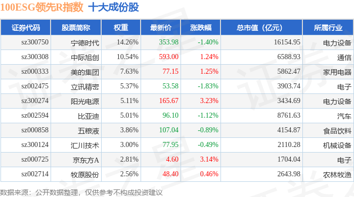资金流向方面,100ESG领先R(470030)指数成份股当日主力资金净流出合计79.98亿元,游资资金净流入合计9.53亿元,散户资金净流入合计70.46亿元。成份股资金流向详情见下表: