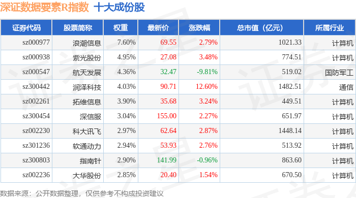深证数据要素R(470053)指数十大成份股详情如下: